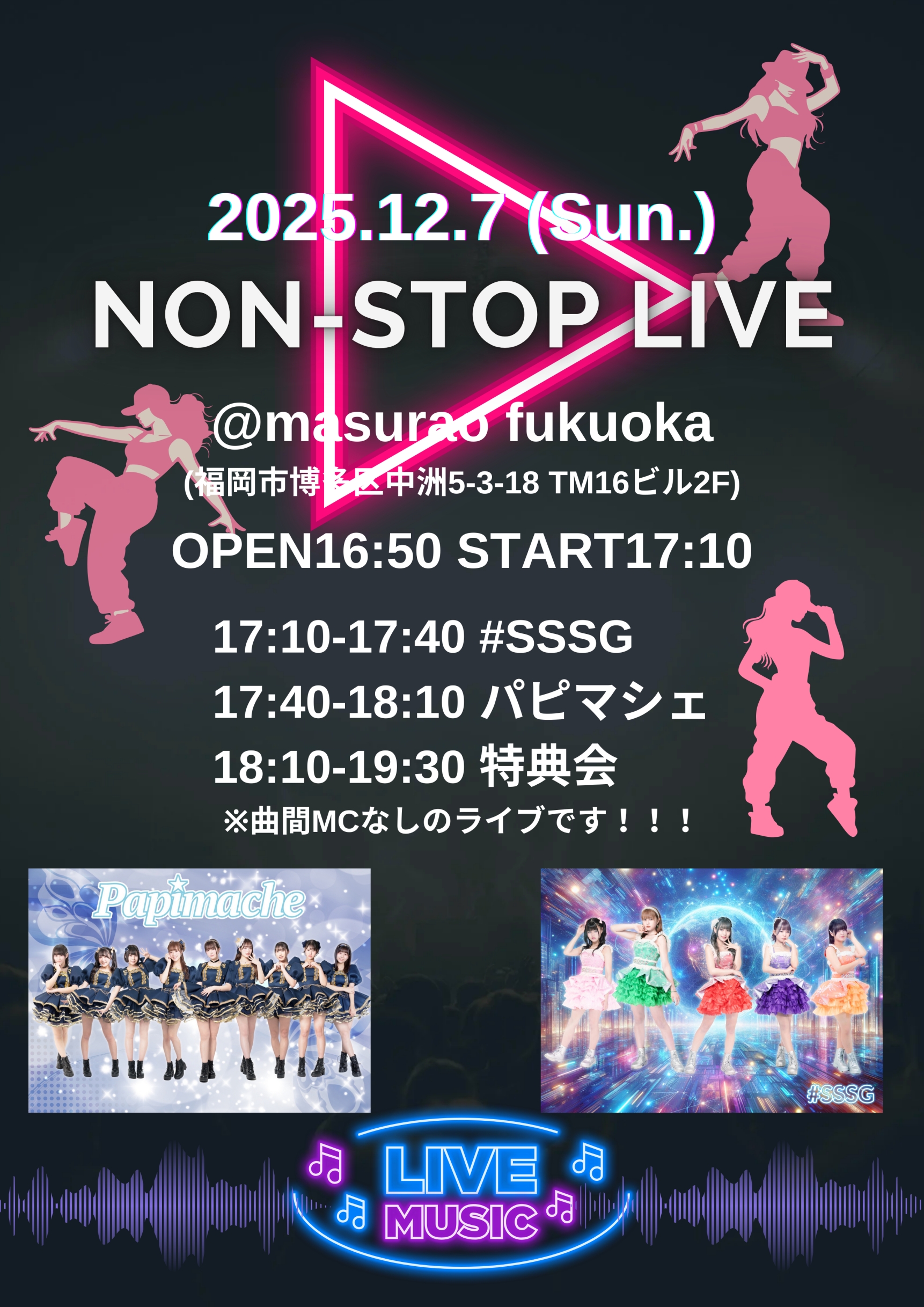 曲間MCなしのライブです!!!